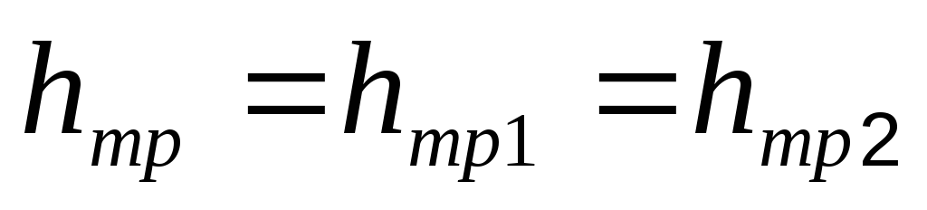 Так как трубы 1 и 2параллельны, то потерянные напоры в этих трубах