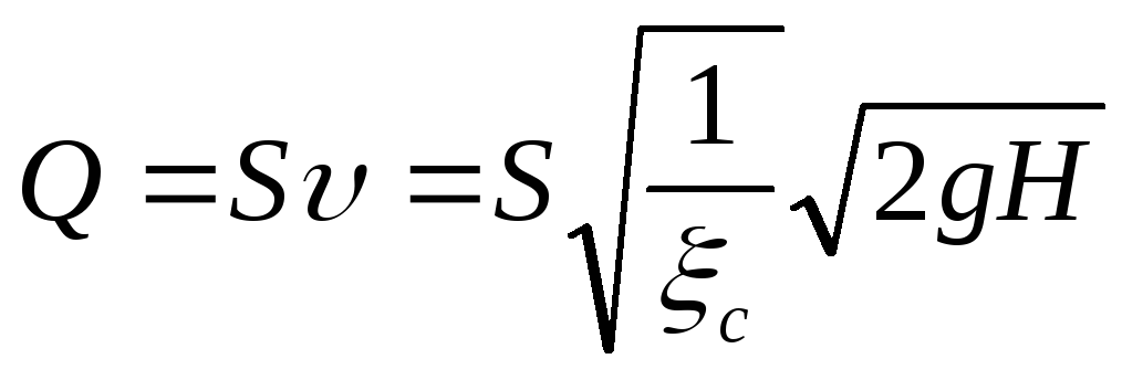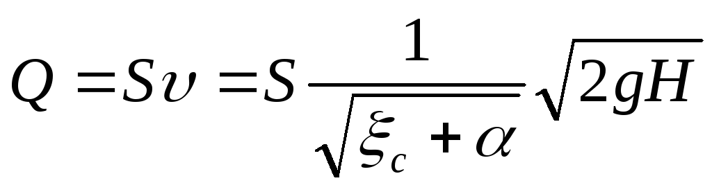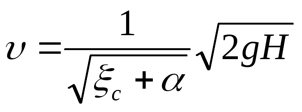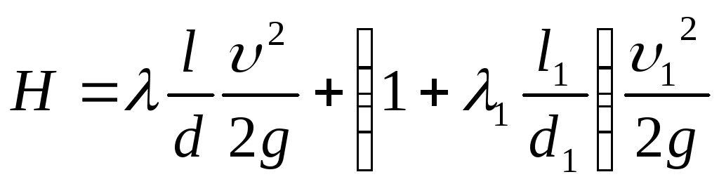 Из уравнения Бернулли для сечений 1 — 1 и 2 — 2, получим