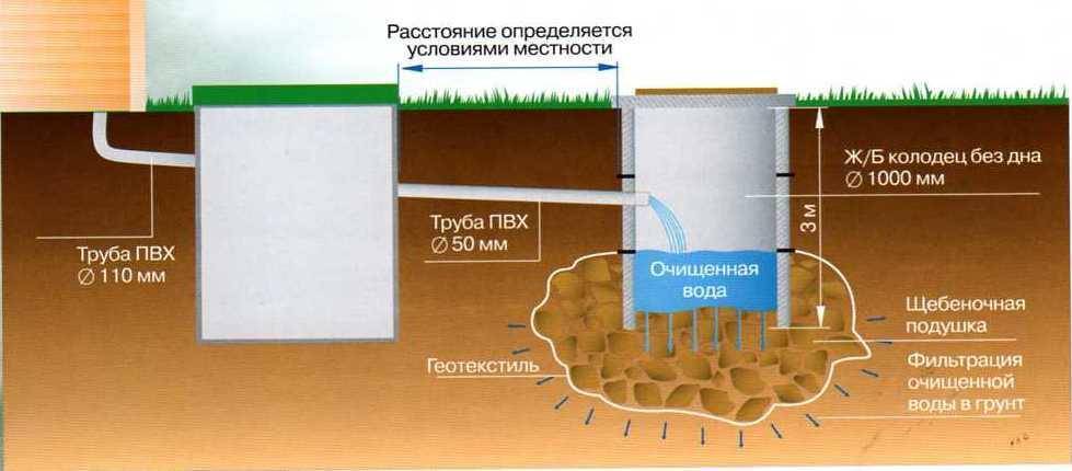 Если правильно выполнить устройство дренажа из песка и гравия, то вода будет уходить в грунт. Данный вид также требует откачки отходов, но нечастой.