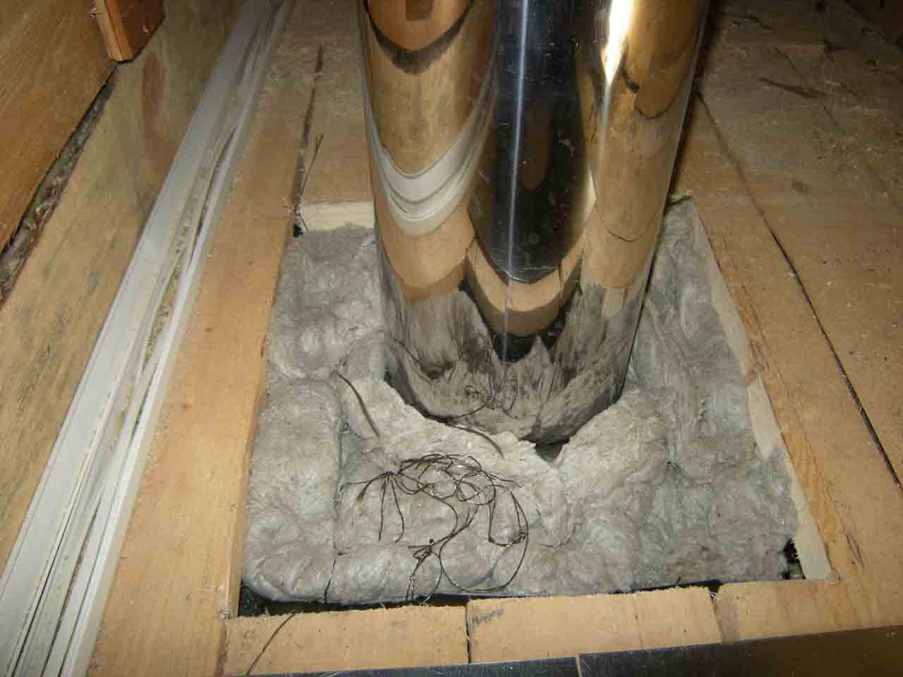Дымоход должен быть надёжно изолирован от сгораемых конструкций