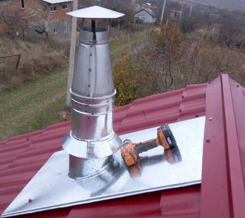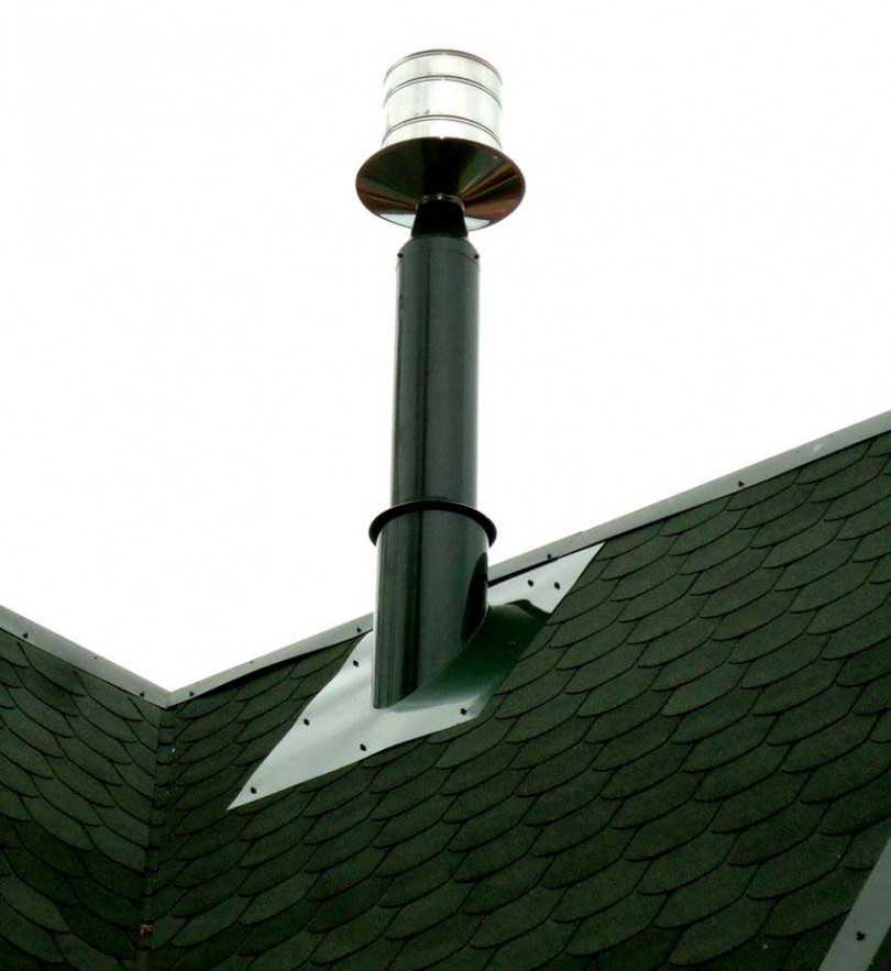 Также необходимо учитывать расстояние между крышей и концом выступающей наружу трубы: