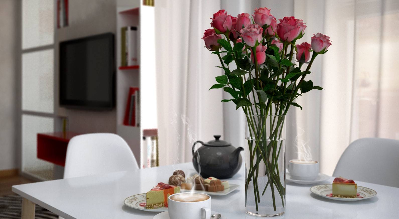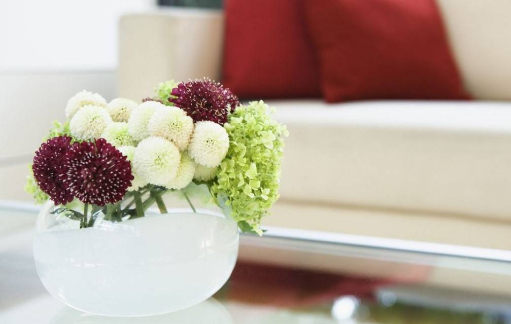 Маленький букет цветов можно поставить на журнальный столик в гостиной