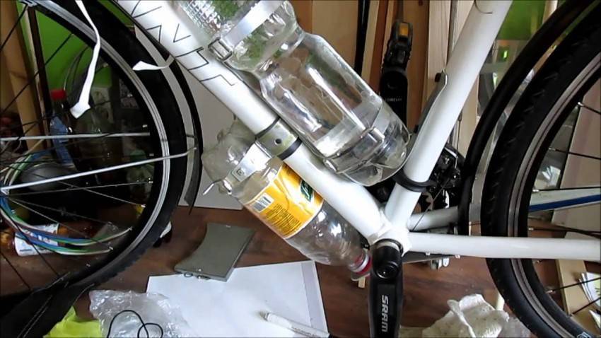 - В клапан насаживается пластиковая трубка, к которой фиксируется верхняя часть второй бутылки. С противоположной стороны устанавливается шланг.