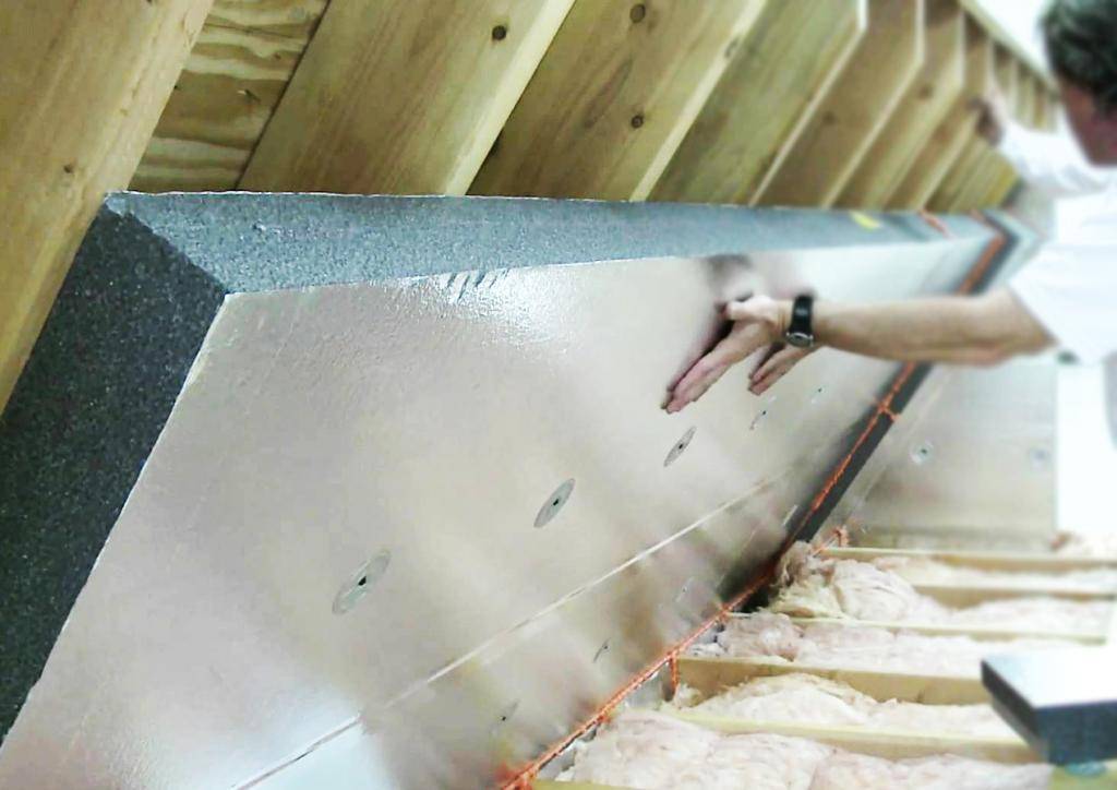 Фольгированный материал подходит для утепления бетонных поверхностей. При его использовании для внутреннего утепления потолка, владельцу дома не нужно покупать дополнительных теплоизоляционных материалов. Производители предлагают листы фольги с замковыми механизмами, поэтому стыки между отдельными листами надежно закрыты от поступления в помещение холодного воздуха. На рынке строительных материалов фольгированный утеплитель представлен в двух вариантах: односторонний, двухсторонний.