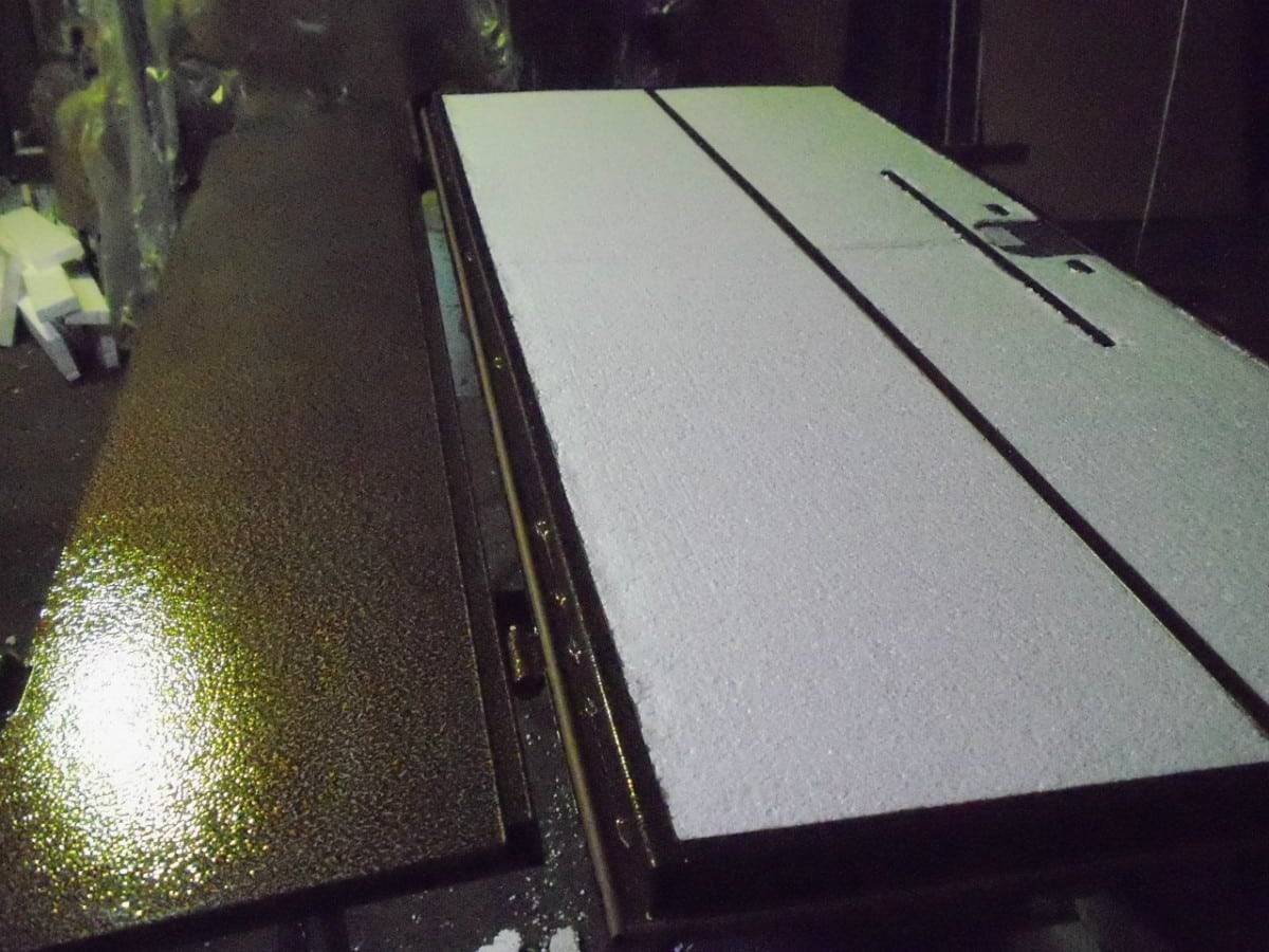 - Все щели и зазоры между листами пенопласта также обрабатываются монтажной пеной. Конструкцию коробки обязательно следует оснастить резиновым уплотнителем.