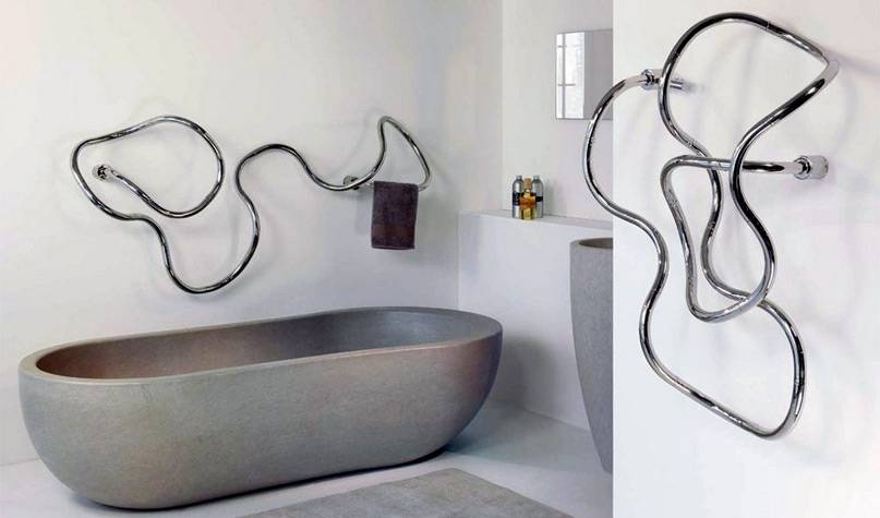 Полотенцесушитель из нержавеющей стали необычной формы: хорошее дизайнерское решение для квартиры