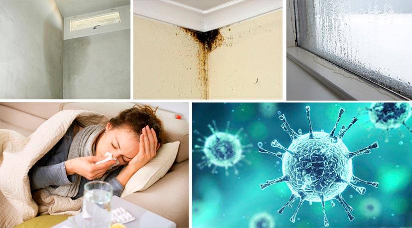 Повышенная влажность и тепло – отличная среда для размножения спор грибка. Чаще всего черными и зелеными пятнами покрываются углы и стены в ванной комнате, на кухне, в туалете. Люди с ослабленным иммунитетом и дети, проживающие в таких квартирах, подвержены аллергии, частым респираторным заболеваниям. Сырая комната для астматика опасна тем, что при длительном нахождении в ней частота приступов увеличивается.