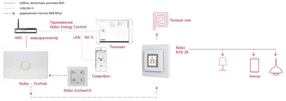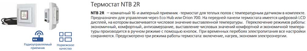 Как и у некоторых термостатов, терморегулятор Nobo NTB 2R имеет свой второй пола. В некоторых случаях регулировку нагрева пола удобно осуществлять по температуре воздуха в помещении. Такой способ используется, когда теплый пол является основным способом отопления. В настройках термостата можно принудительно задать регулирование температуры пола по выносному или встроенному датчику.