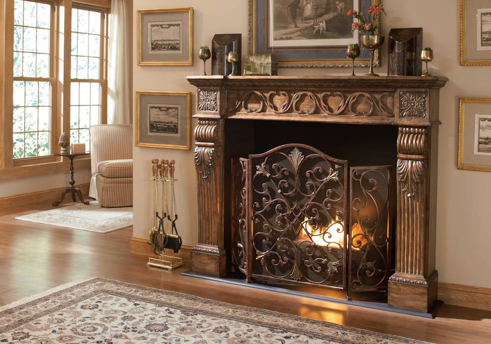 Интерьер гостиной в рустикальном и классическом стиле непременно нужно дополнить таким элементом дизайна. Не забудьте об аксессуарах, которые помогут вам правильно обслуживать эту сложную конструкцию. Настоящие дровница и меха не понадобятся. Это очень удобное и современное устройство, простое в эксплуатации.