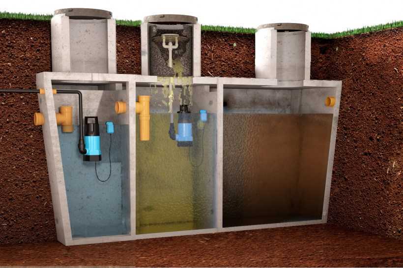 В двухкамерных содержимое отстаивается и перерабатывается бактериями в анаэробных условиях. Степень очистки – не более 60 %. Можно дополнительно устроить фильтрационное поле почвенной доочистки – такую воду по санитарным нормам уже можно выпускать в почву.