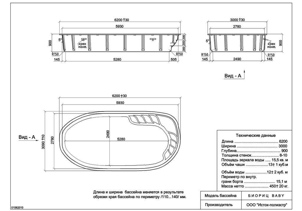 За основу проектной документации можно взять схему уже готовой каркасной конструкции искусственного водоёма, которая включает следующие элементы: