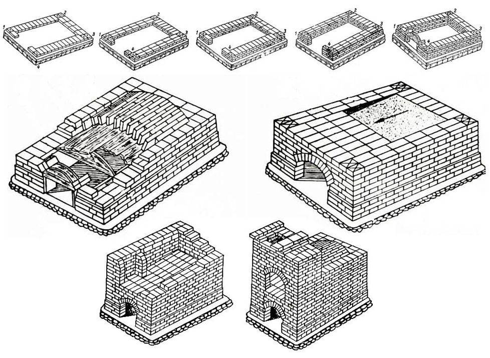 Мы рассмотрим три примера печей с пошаговым руководством по их кладке: