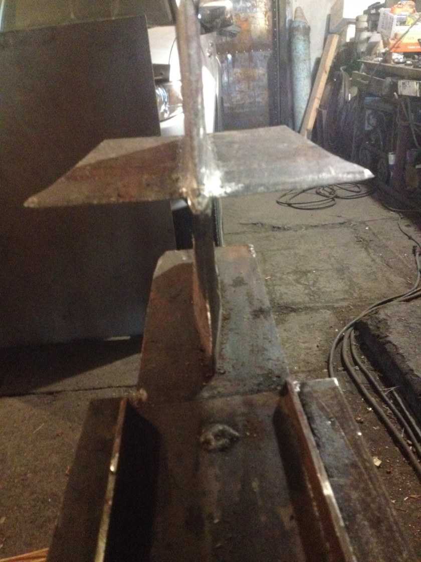 - привариваем ручку и утяжелитель. В данном случае использован кусок рельсы. После окончания работ желательно покрасить конструкцию, чтобы она не ржавела.