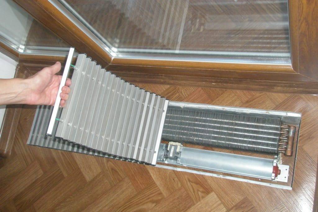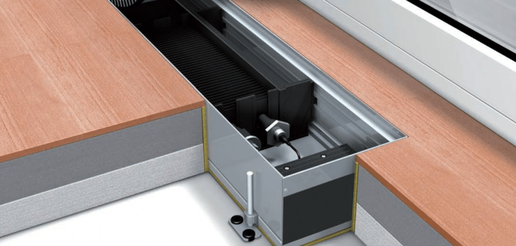 Устройство и внешний вид внутрипольного конвектора с вентилятором