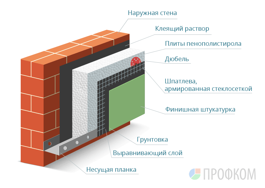 Этапы работ по утеплению стен пенополистиролом с внешней стороны