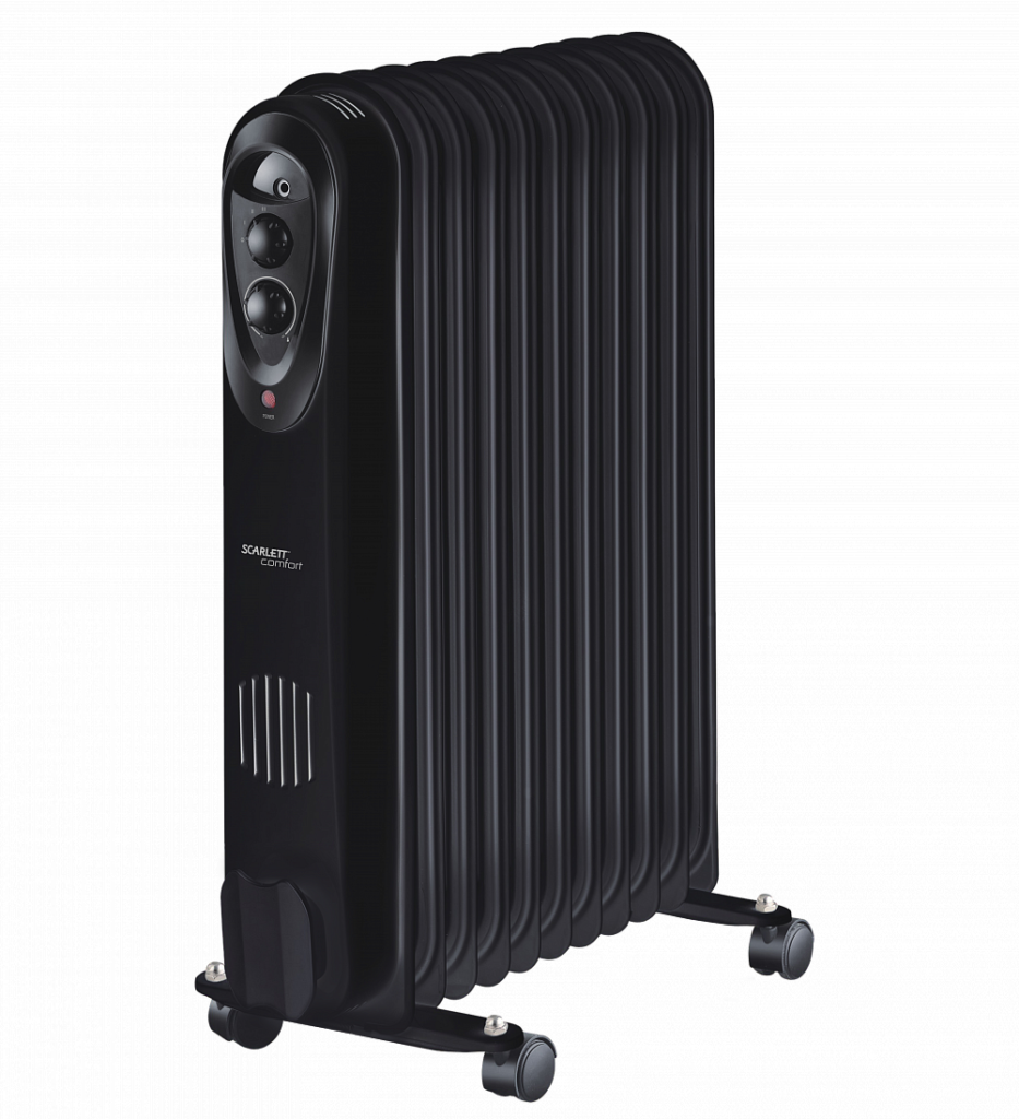 В названии этого типа отражена определённая преемственность с традиционными радиаторами центрального отопления. Масляный радиатор тоже имеет рёбра, но внутри его корпуса нагревается не вода, а минеральное масло. Оно, в свою очередь, передаёт тепло корпусу радиатора, который постепенно нагревает воздух помещения. При наличии встроенного вентилятора процесс нагрева убыстряется.