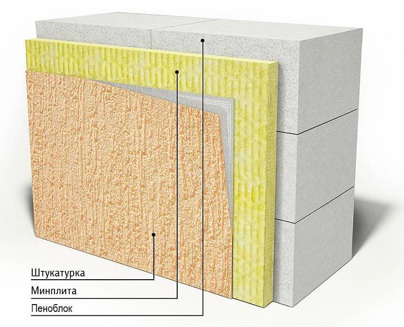 Теплоизоляция стен снаружи минеральной ватой выглядит следующим образом: