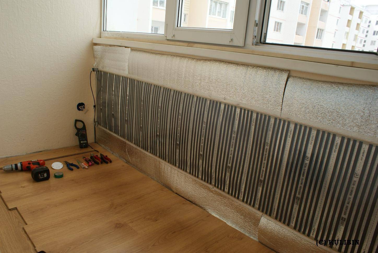 Установить инфракрасный теплый пол на стену гораздо проще. Обычно такой вариант используют на балконе, который отделывается вагонкой либо гипсокартонными плитами. В этом случае Вы должны учитывать важный нюанс – использовать фольгированную, токопроводящую, теплоизоляцию категорически запрещено.