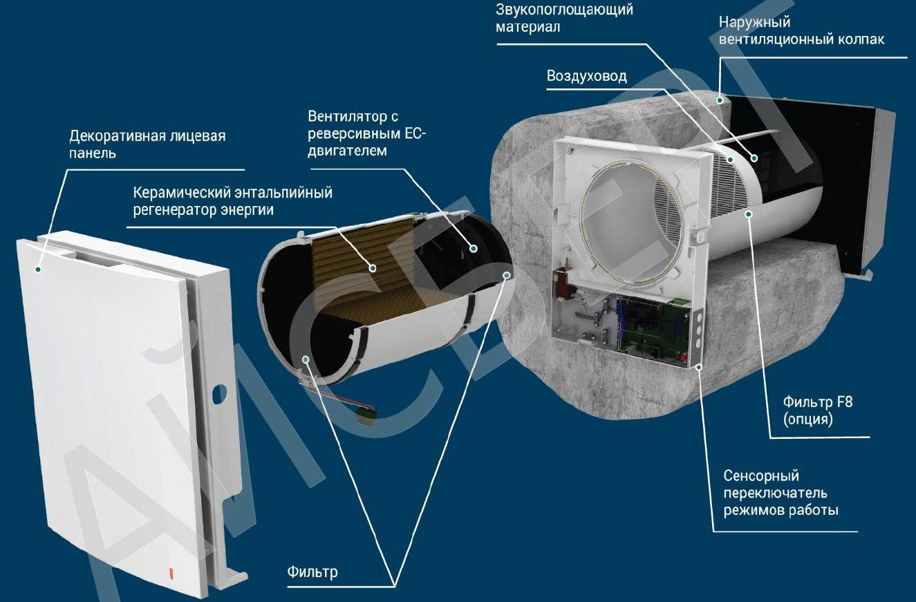 - минимальные затраты энергопотребления для работы приточного и вытяжного вентилятора;