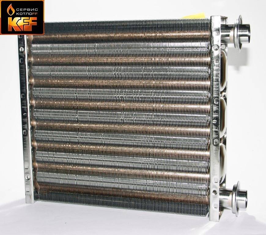 Материал изготовления теплообменника – нержавеющая сталь. За счет использования вентилятора с изменяемым числом оборотов вращения и повышению эффективности горения стало возможным заменить медный теплообменник на теплообменник из “нержавейки”, который безусловно обладает существенно большим сроком эксплуатации.