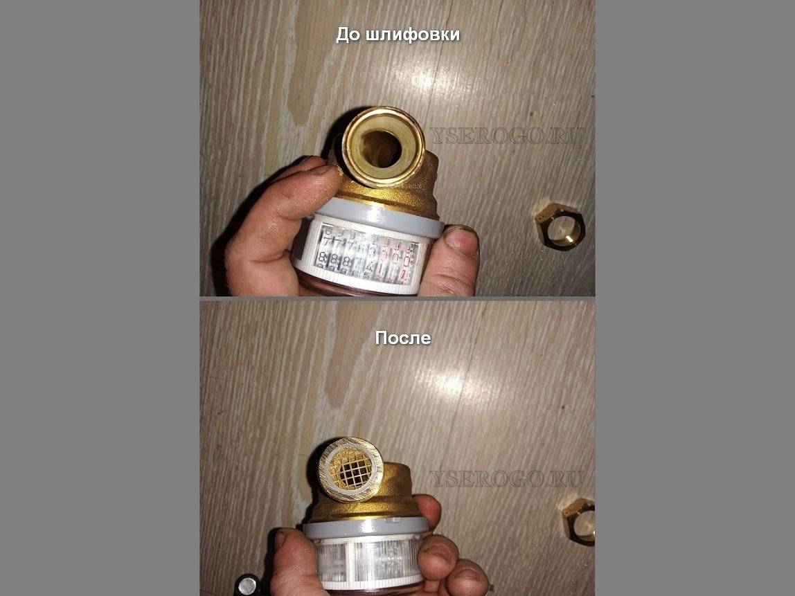 - В трубу до места установки счетчика должен быть врезан фильтр грубой очистки. Это необходимо, чтобы прибор прослужил дольше. В поступающей из водопровода воде могут содержаться плотные частицы, приводящие к быстрому износу водомера, точнее его механических деталей. Наличие фильтра приводит к снижению вероятности различных проблем и повышает точность работы прибора.