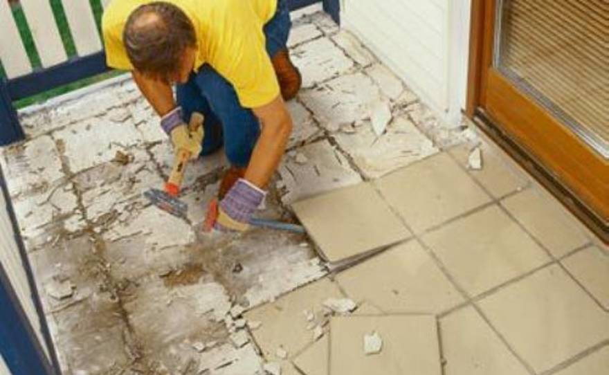 С пола нужно убрать покрытие, определить участки, на которых бетон осыпается или отслаивается. Их следует обработать перфоратором, очистить от грязи и пыли.