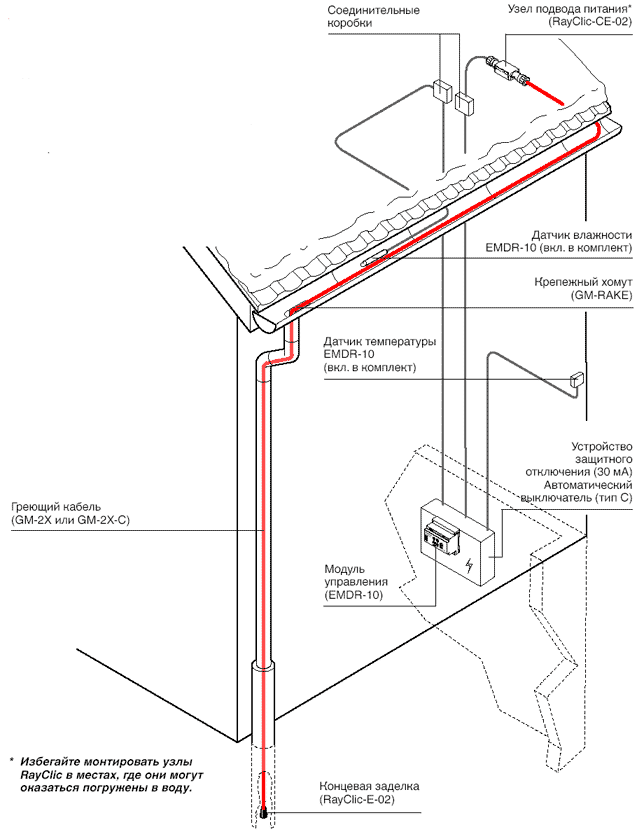 Система обогрева водостоков обычно монтируется совместно с обогревом некоторых участков кровли. Перед устройством такого типа стоят следующие задачи: