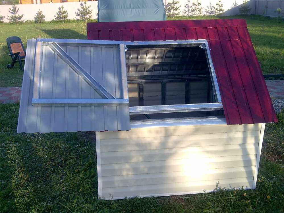 По этой же схеме можно сделать крышу для домика из металла. Если есть сварочный аппарат, использовать можно профильную трубу. К ней площе крепить отделочный материал.