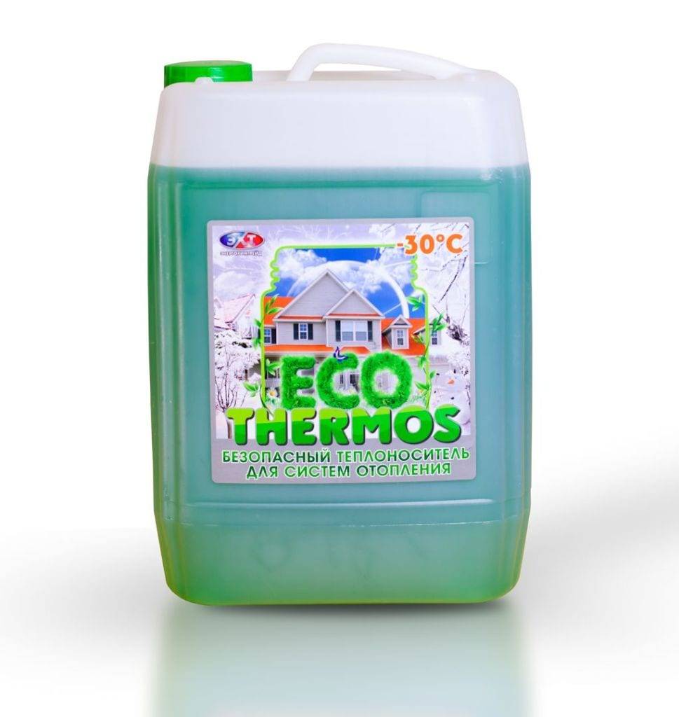 Кроме традиционного теплоносителя – воды, предлагается незамерзающая жидкость антифриз. Единственный случай его использования – это длительное отключение отопления, например, при аварийной ситуации, невозможности посещения дома долгое время.