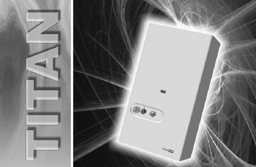 Титан – эта модель оборудована атмосферной горелкой и требует наличия традиционного дымохода. Вода нагревается проточным способом, а датчики давления газа и воды обеспечивают безопасность. Имеется специальная функция, препятствующая замерзанию теплоносителя – автоматически включается нагрев, если температура опускается до +5 градусов. Не чувствителен к перепадам в энергосистеме.