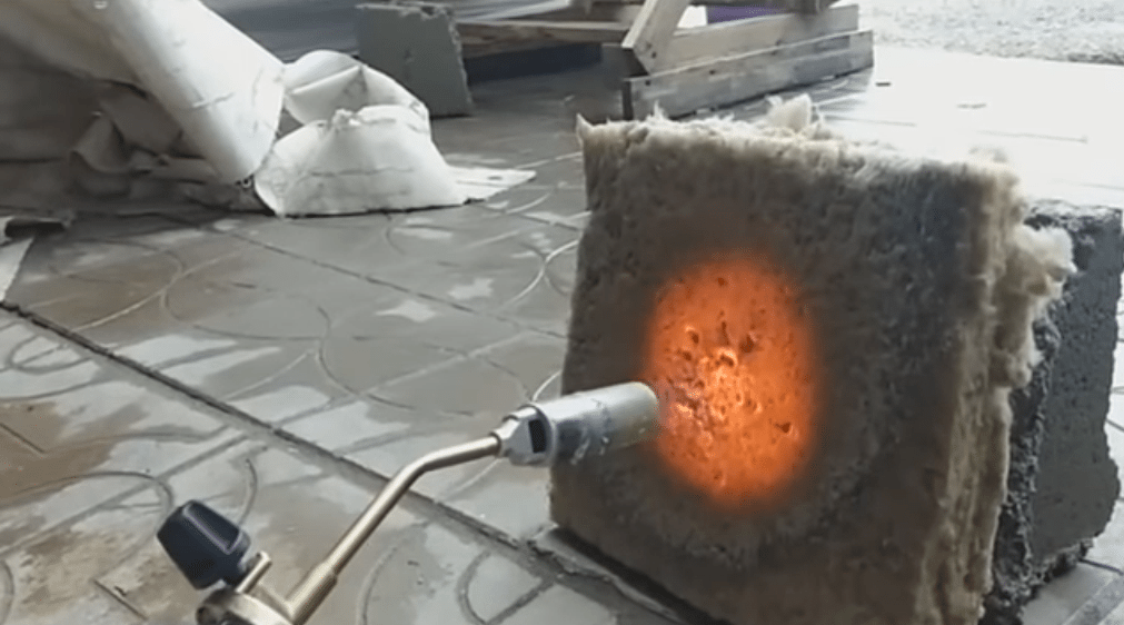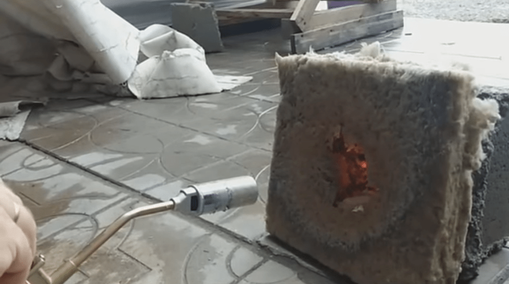 Скажу сразу — оба образца постепенно поддались и в них образовались дырки, что говорит о том, что минералватные утеплители разрушаются при нагреве выше заданного предела.