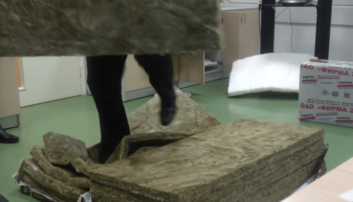 Как видим, результат напоминает предыдущий опыт, но с точностью до наоборот. Теперь встряхнем плиту каменной ваты URSA: