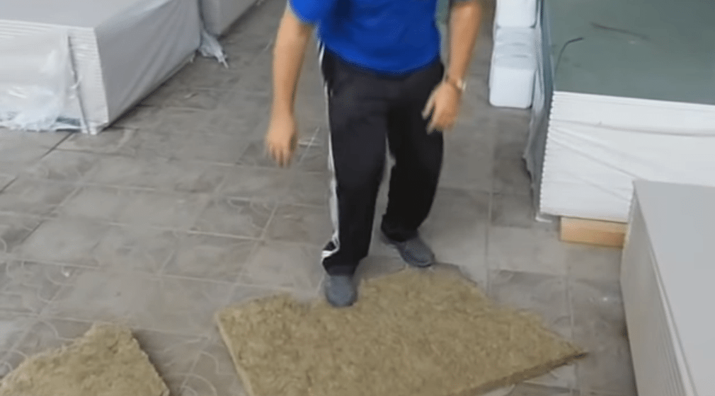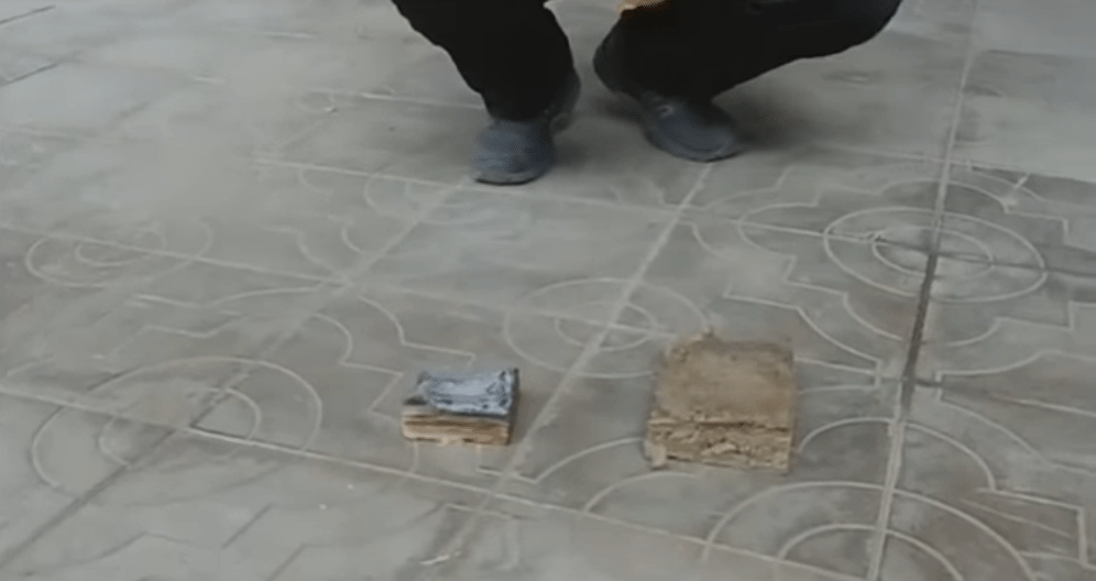 Теперь проверим этот материал на память формы: способен ли он восстанавливать первоначальный объем после сжатия? Для этого я наступил на плиту: