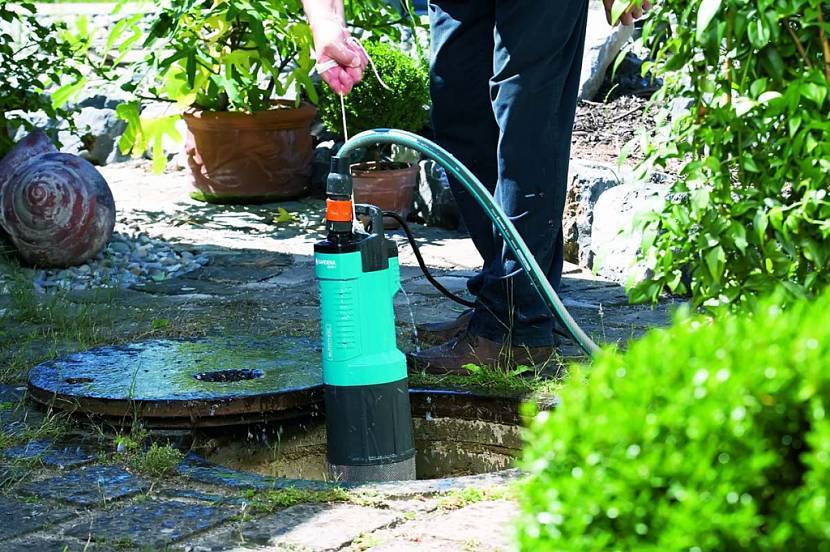 - Чтобы работа была выполнена максимально качественно, нам следует использовать дренажную помпу. Именно эти устройства имеют конструкцию, которая позволяет пропускать через проточную часть воду с большим количеством твердых включений.