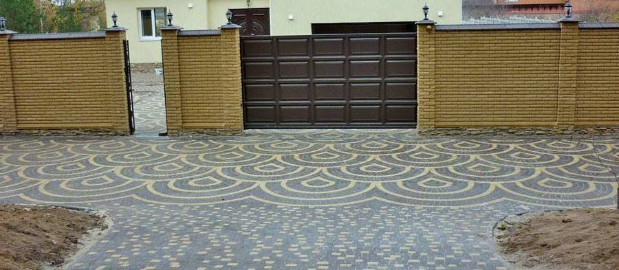 Подъездная дорожка с имитацией тротуарной плитки методом штампования