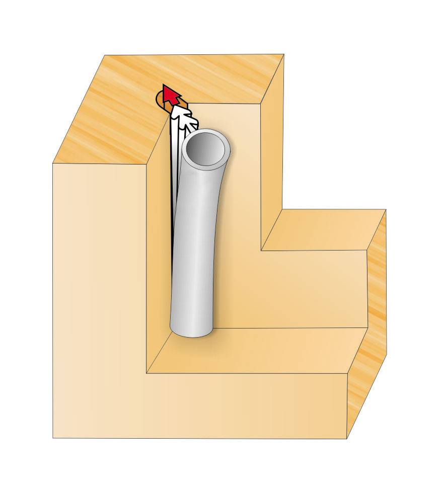 Чтобы было легче делать канавку в створке, необходимо снять ее с петель и вынести на лестничную площадку или на улицу. Угол канавки должен составлять сорок пять градусов. Следите за тем, чтобы специалисты зачистили поверхность и удалили из канавки деревянную стружку.