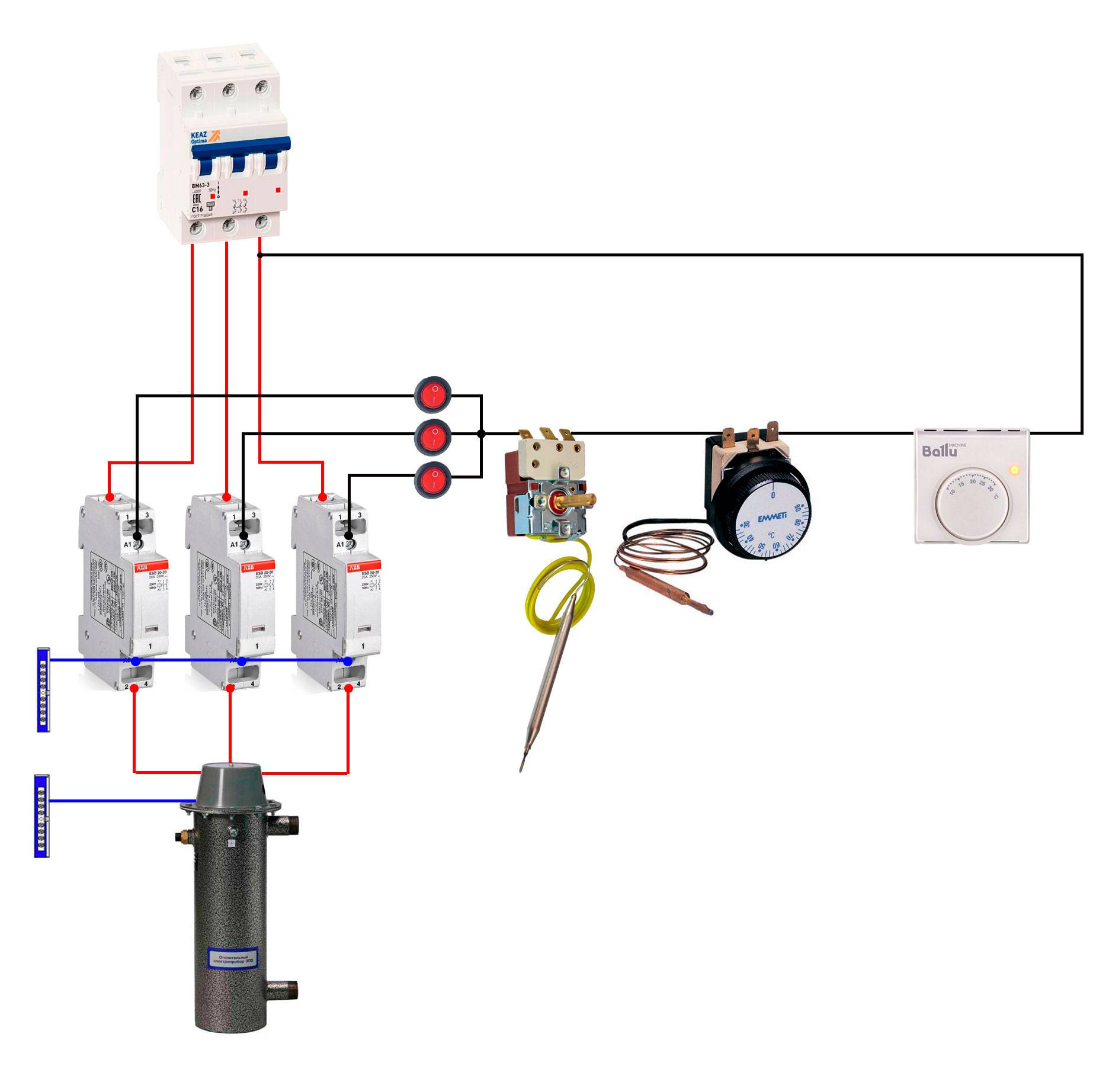 Схема подключения электрокотла к электросети 220 В (однофазного)