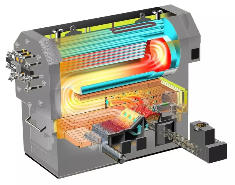 Ключевой компонент системы — котел. Основным его предназначением считается преобразование воды в пар. В дальнейшем он переходит в трубопровод.