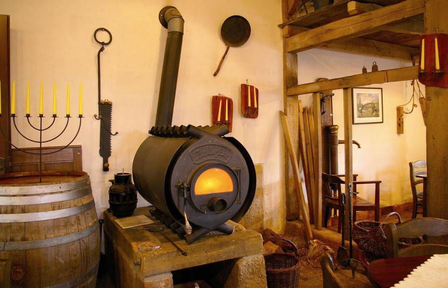 Готовая конструкция успешно применяется для обогрева небольшого помещения. Отопительная готовая печь имеет не совсем привлекательный вид, поэтому ее часто применяют для хозяйственных построек.