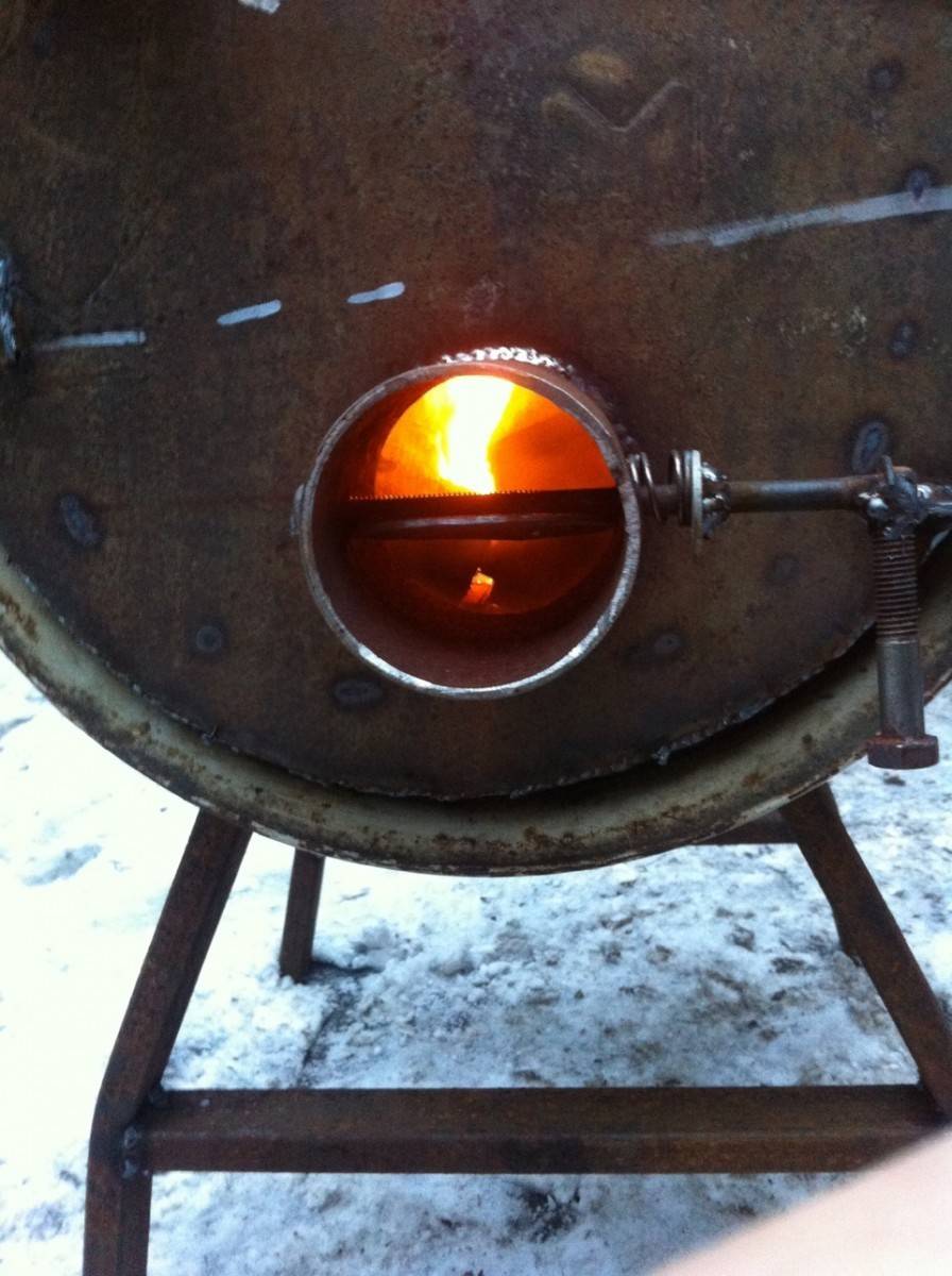 В крышке с внутренней стороны приваривается два кольца разного диаметра, в зазор закладывается асбестовый термостойкий шнур, который будет уплотнителем. В заслонке, подающей воздух, нужно сделать небольшой вырез на кромке, так чтобы даже при полном закрывании оставалась маленькая лазейка для воздуха. В клапане дымоотвода нужно вырезать сегмент на 25% площади всей заслонки, как кусок торта, разрезанного на четыре части. Чтобы было удобнее убирать сажу, можно приспособить на низ топки пластину, но это необязательно.