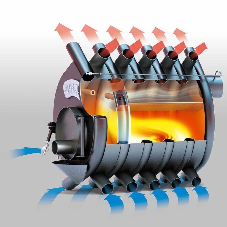 Как я модернизировал булерьян Особенности устройства рассматриваемой печки таковы, что она изначально может качественно и равномерно распространять кислород внутри себя. Трубки снизу втягивают холодный кислород, а из установленных вверху выводится подогретый воздух. При желании вы можете обеспечить принудительную циркуляцию кислорода.