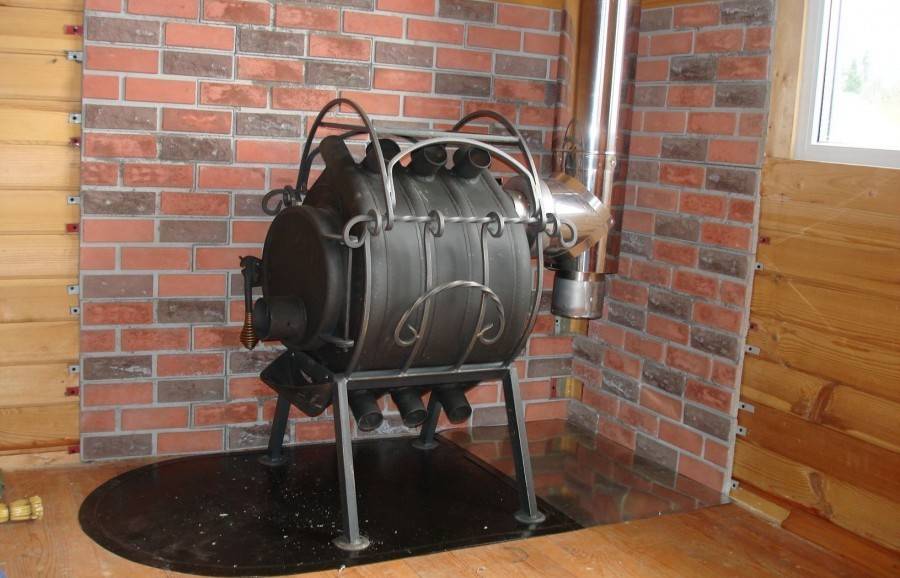 Топка конструкции снабжена широкой герметичной дверцей с поддувалом в виде патрубка с заслонкой, являющейся дросселем. Возможность регулирования мощности – отличительная выгодная особенность этой разновидности отопительного прибора. Чтобы погасить печь, дроссель полностью перекрывается.