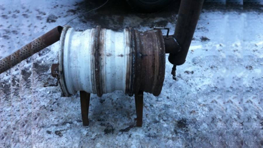Теперь из кусочков труб делаем ножки и печь можно испытывать.