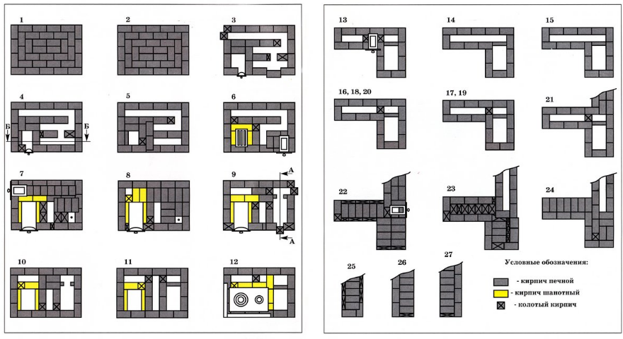 Фото 4. Пример порядовки кирпичной печи с водяным контуром: изображены начальные этапы строительства с 1 по 20.