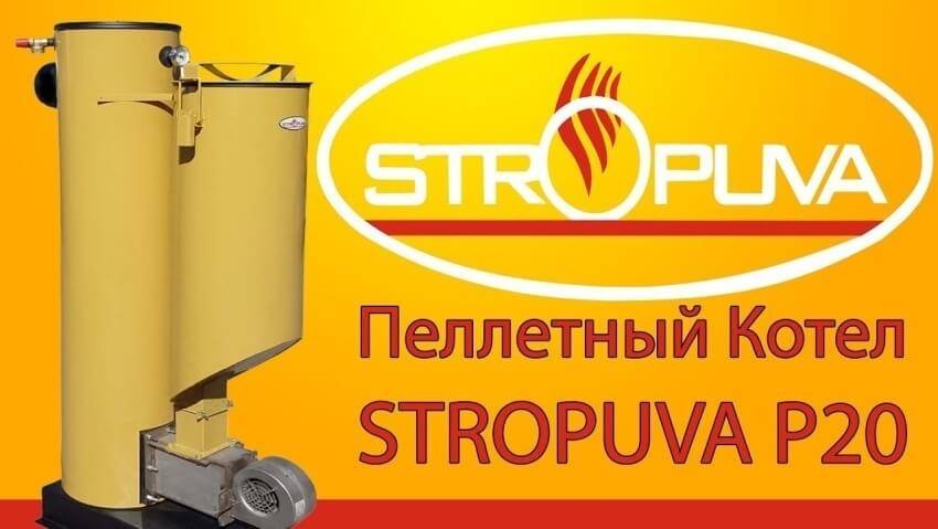 - Stropuva P20, тепловая мощность — 20 кВт, размер фракций O6-8 мм, емкость бункера — 90 кг, тип горелки — факельная, ручной розжиг, цена — 91340 руб.