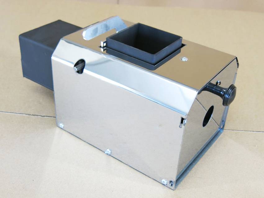 Бункеры могут отличаться по форме и размеру (чем больше бункер, тем реже нужно будет загружать пеллеты). Сварить ёмкость не составит труда, тем более что даже небольшой фабричный бак будет стоить дорого – от 18 тыс. руб. а для самодельной конструкции можно даже сколотить фанерный короб на подставке. Внутри бункера дно делается с уклоном в сторону к шнеку (на подачу пеллет).