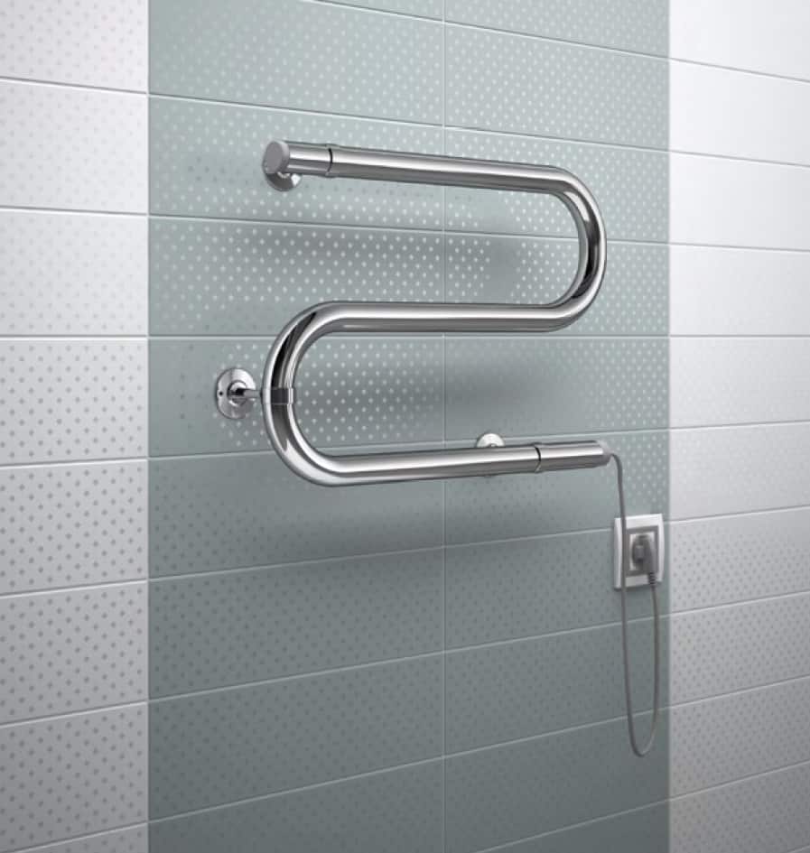 - Полотенцесушители электрические – металлические трубчатые конструкции с электрическим теплонагревателем внутри. Большим плюсом такого устройства будет возможность автономной работы.