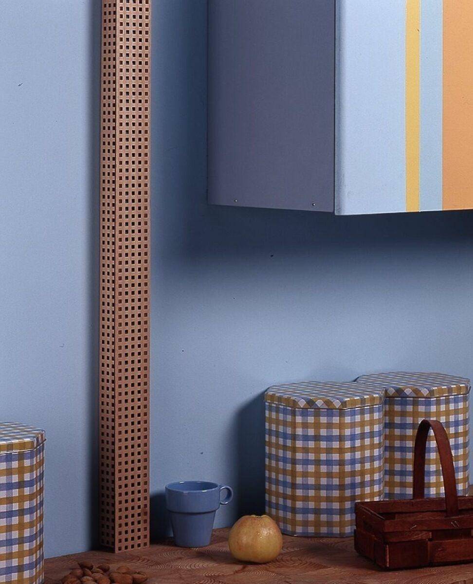 Имитация рейлинга — наиболее удачный способ замаскировать выделяющиеся трубы. Но если на рейлинги обычно вешают крючки для различных кухонных принадлежностей, то труба должна оставаться свободной.