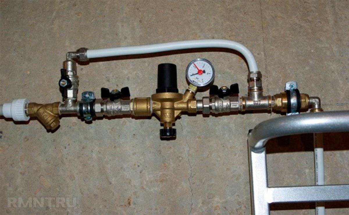 Контроль давления воды обеспечивает установленный в систему датчик — манометр