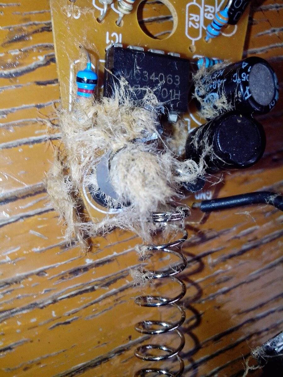 Конденсатор сделал «Бум». Когда это происходит, корпус ЗУ просто разрывается.